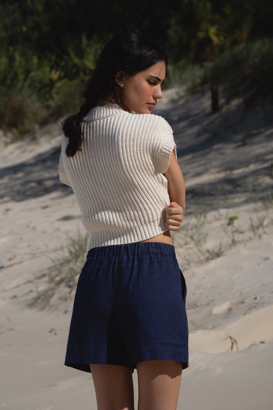 AMELIA DENIM BLUE LINEN SHORTS
