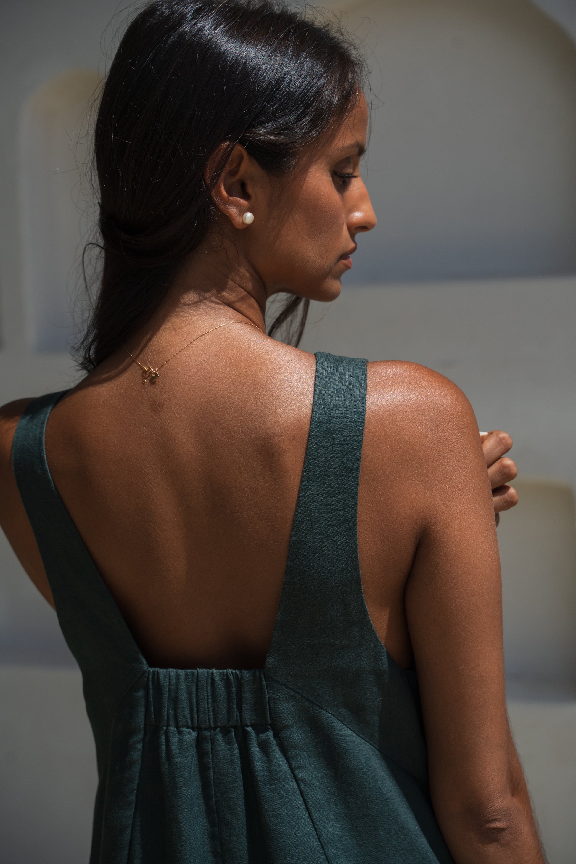 Effortless style meets everyday comfort in the IRIS Linen Dress. Crafted from 100% EUROPEAN FLAX® certified linen, this A-line midi dress features a flattering V neckline and seam pockets detailed with crisp top stitching. The elasticated back neckline ensures a comfy fit, while the subtle back hem slit adds just the right amount of flow. IRIS is bra-friendly, curvy-bust friendly, and petite-friendly - a versatile piece to dress up or down this Spring & Summer.